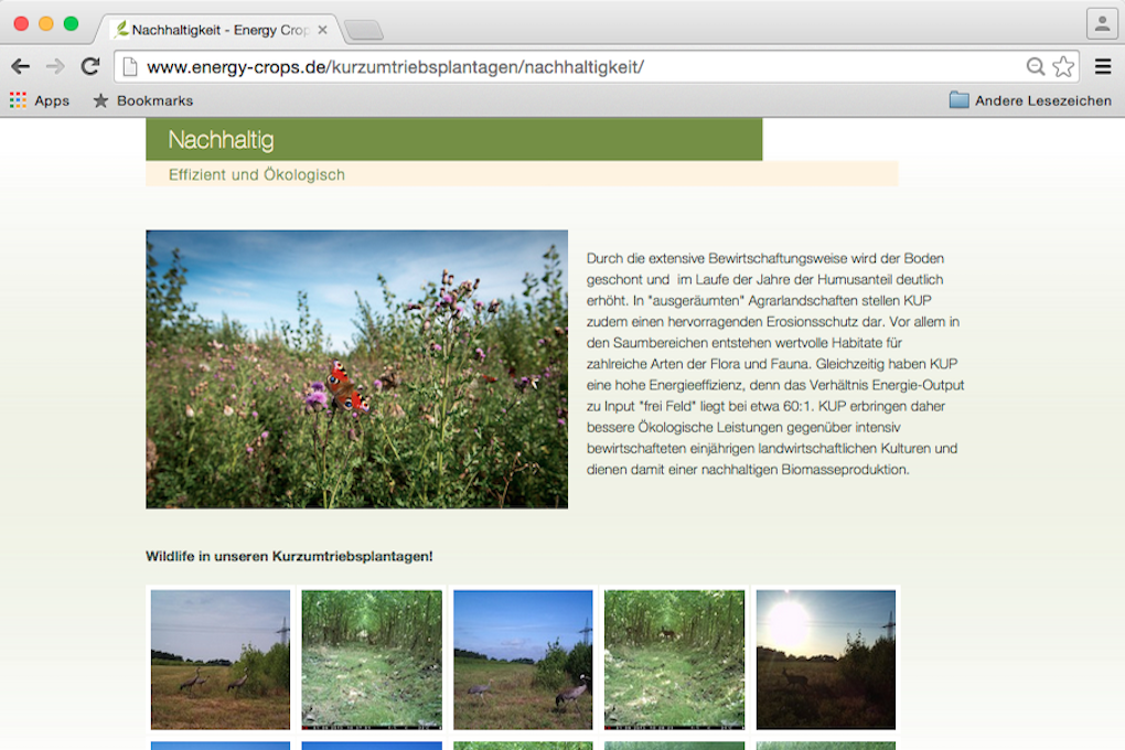 Weg: Leicht verdauliche Text-Happen präsentieren Holz als klimaneutralen Erzeuger von Strom und Wärme.